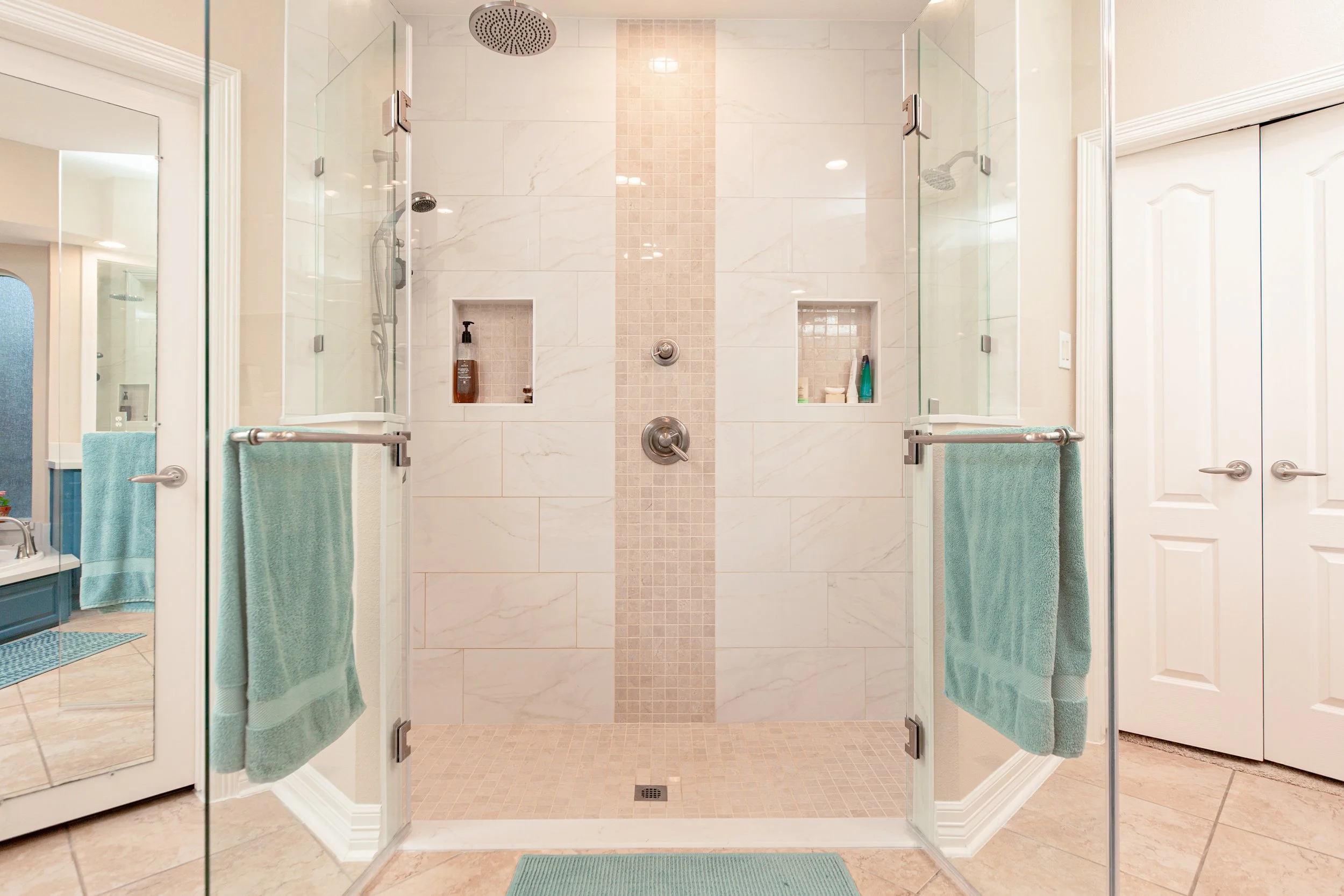 Naming this the “two-bathrooms” remodel simply because our customer wanted both upstairs bathrooms remodel with the same tile placement & color scheme.